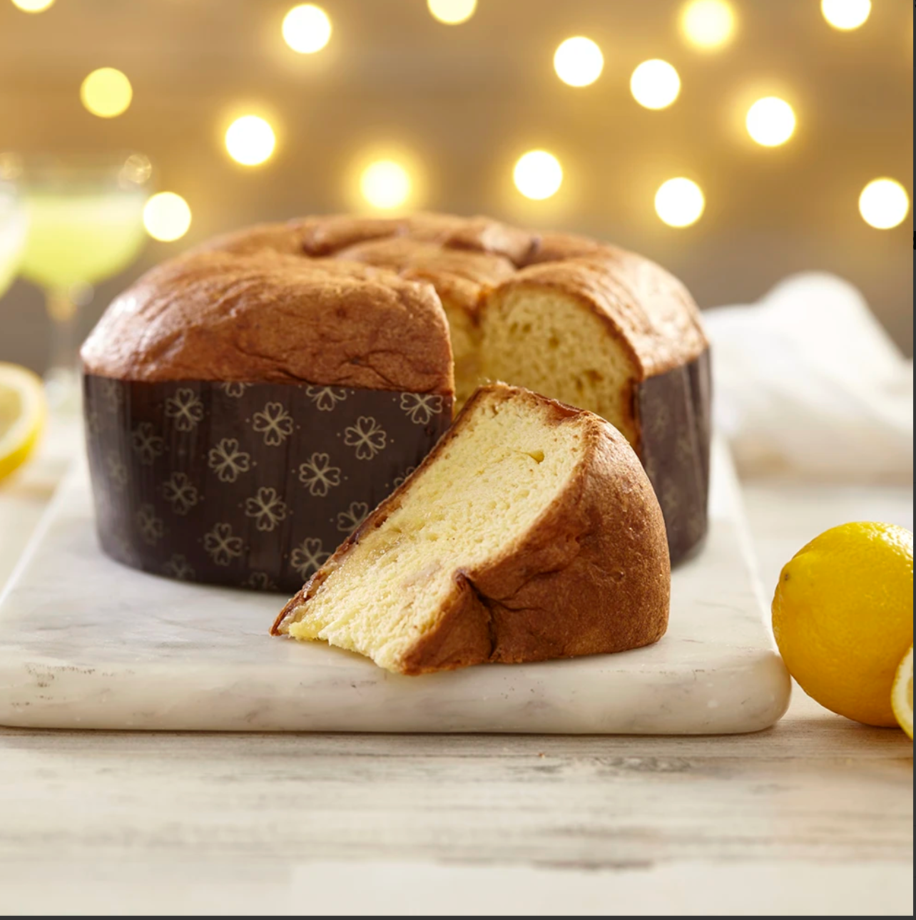 A moist Panettone filled with Limoncello cream and candied lemon peel.