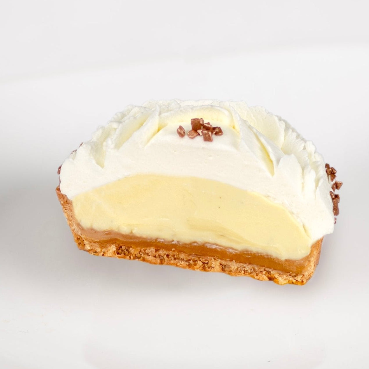 This banana cream pie is a heavenly combination of banana custard, fresh banana slices, and buttery caramel cradled in a perfect graham cookie crust. Fresh whipped cream and caramelized bananas add the finishing touch.
