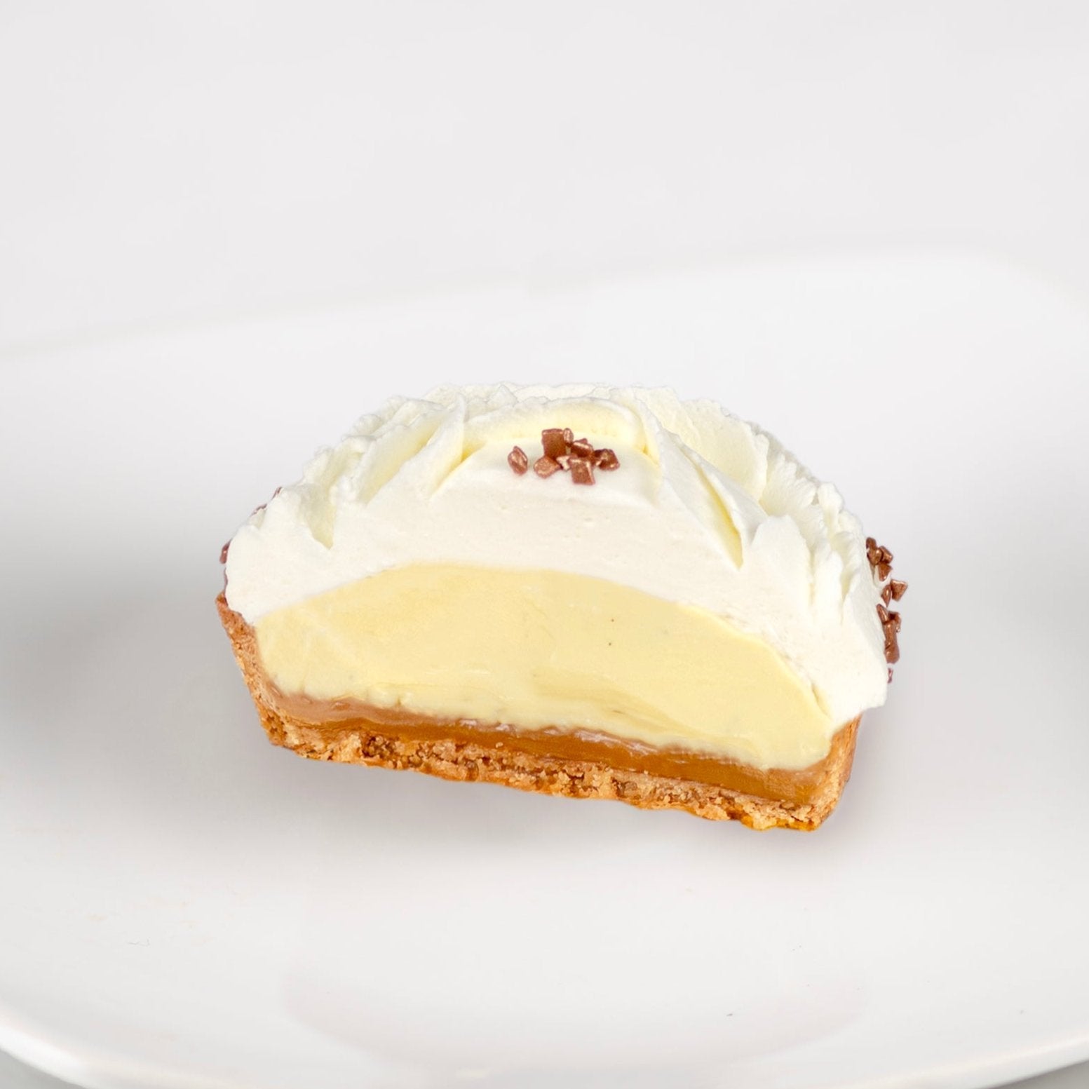 This banana cream pie is a heavenly combination of banana custard, fresh banana slices, and buttery caramel cradled in a perfect graham cookie crust. Fresh whipped cream and caramelized bananas add the finishing touch.