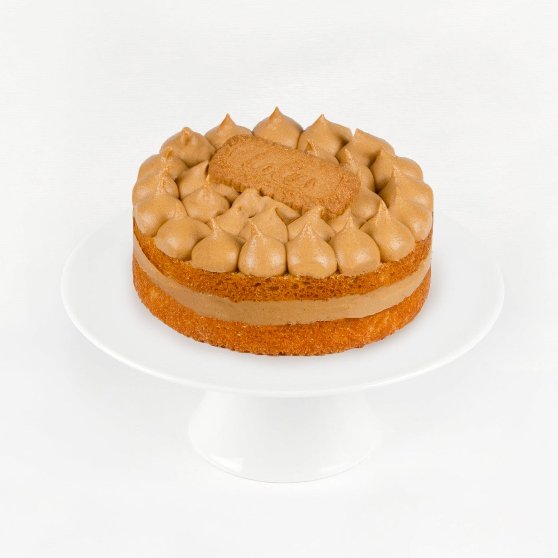 Introducing the Biscoffee Cookie Butter Cake - where coffee’s favourite cookie meets layers of vanilla cake, soaked in a rich coffee syrup, and luxurious Biscoff spread layers. Finished with the signature Lotus™ Biscoff cookie crunch.